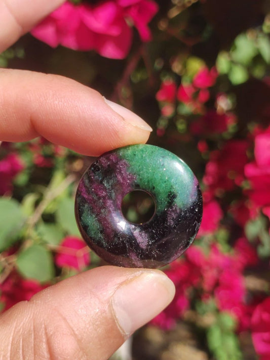 Rubis de 30 mm dans un beignet de pierre précieuse de zoisite A Application Zoisite La zoisite est utilisée de différentes manières comme pierre de guérison. La pierre peut être...