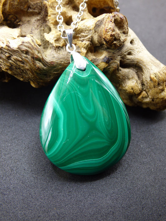 Malachite AAA en forme de larme ~ comprenant un œillet en argent 925 et une chaîne en acier inoxydable 304 avec fermoir mousqueton Une pierre précieuse taillée de très, très...