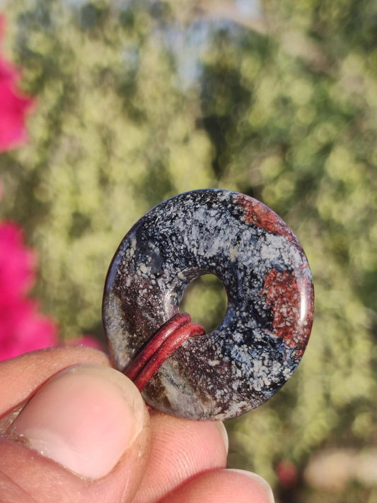 Collier de pierres précieuses en forme de donut Pietersite avec cordon en cuir de 1,5 mm en marron antique Taille du beignet : 30 x 6 mm Pietersite La pietersite...
