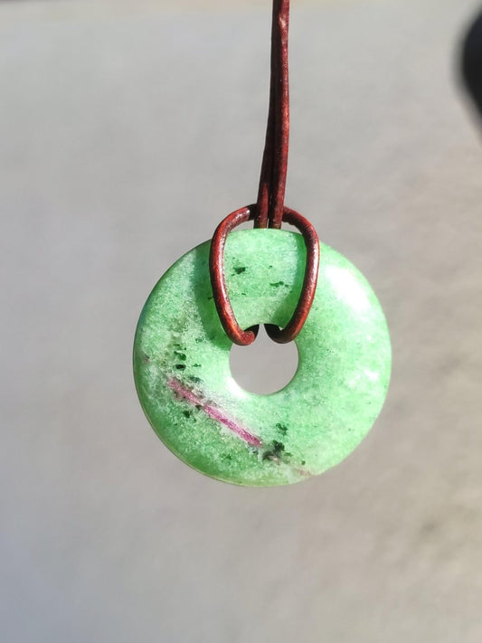 Donut A en rubis et zoïsite de 30 mm Application de la zoïsite La zoïsite offre de nombreuses utilisations comme pierre de guérison. On peut la porter en pendentif sur...