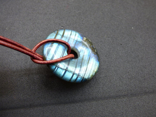 Nous avons ici pour vous des beignets de labradorite rares d'une qualité incroyablement merveilleuse ~ comprenant un bracelet en cuir de 1,5 mm en marron antique Taille 30mm Vous recevrez...