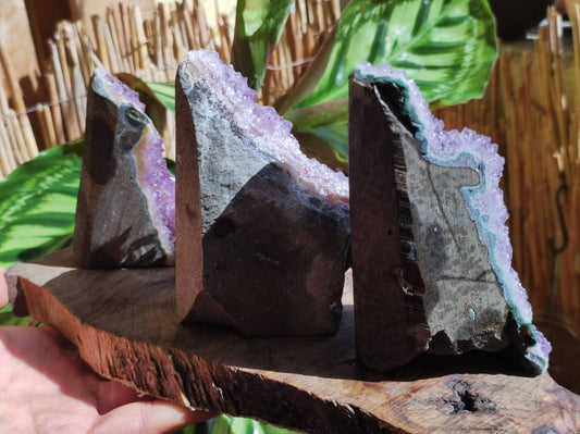 Cristal d'améthyste Nous avons de nouveaux magnifiques spécimens d'améthyste du Brésil pour vous 1-Gauche : 106 x 58 x 58 mm 2-Milieu : 107 x 73 x 86 mm 3-Droite : 92 x 50...