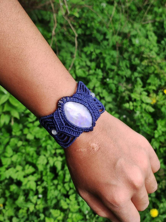 Moonstone ~ Gemstone Macrame Bracelet - décoré de perles de pierre de lune de 6 mm -Pierres précieuses 100% naturelles de grande qualité ! -100% fait main à Berlin -Fil...
