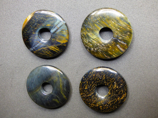 Collier de pierres précieuses avec un donut naturel ~ oeil de faucon ~ donut de 30 mm avec cordon en cuir de 2 mm de couleur marron antique à nouer....