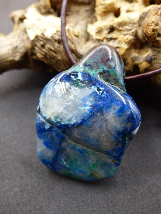 Collier en pierre précieuse Shattuckite - Chrysocolle *Rarity* ~ avec cordon en cuir marron antique de 1,5 mm pour nouage Une très belle "forme libre" Nous espérons que vous apprécierez...