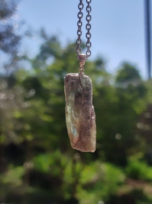 Collier en pierres précieuses avec une cyanite verte ~ comprenant un œillet en argent sterling 925 + une chaîne en acier inoxydable 304 Une très belle qualité de cette cyanite...