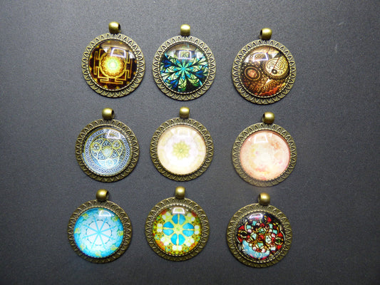 1x cabochon en verre comme collier avec un motif mandala/kaléidoscope ~ de nombreux motifs au choix (chiffres sur la photo - 1-12) Matériau : cabochon en laiton avec dôme en...