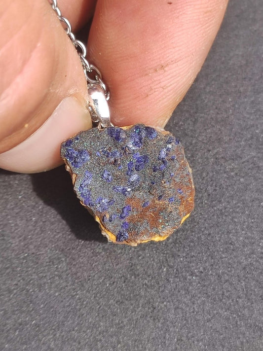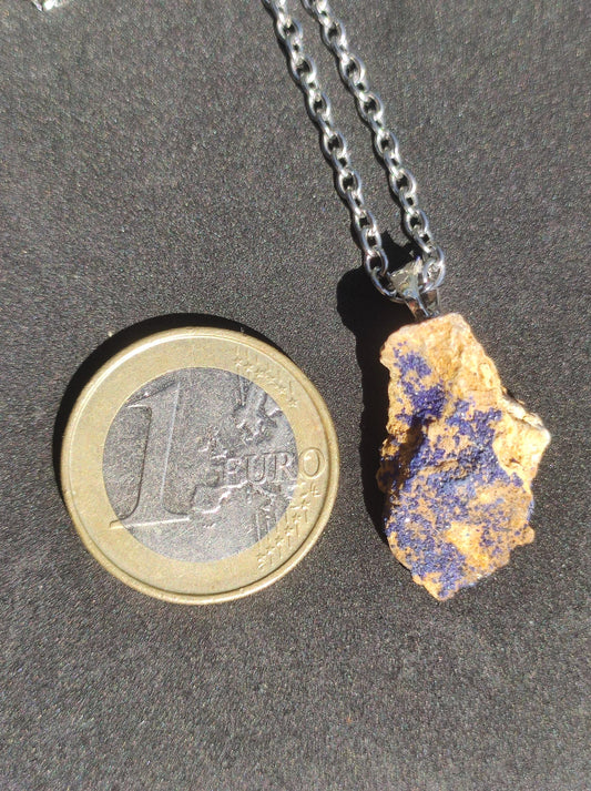Collier en azurite brute ~ incl. Œillet en argent sterling 925 + chaîne en acier inoxydable 304 avec fermoir mousqueton Taille du pendentif : voir comparaison pièce € Comme toujours,...