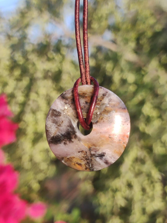 Opale andine rose - Collier de pierres précieuses HIPPIE GOA Boho Tibet Ethno Nature Donut Pierre de guérison Rareté Hommes Femmes Cadeau Pendentif He She Unique