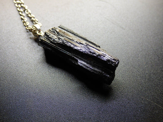 Collier de pierres précieuses avec une tourmaline noire (schorl) ~ incl. Œillet en argent sterling 925 + chaîne en acier inoxydable 304 avec fermoir mousqueton *BEST-SELLER* *Mise à jour 19.12.24...