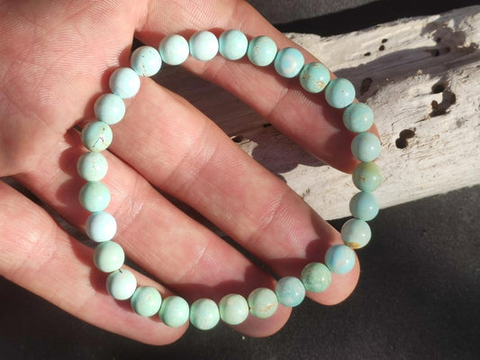 7 mm Hubei TURQUOISE ~ Bracelet de pierres précieuses sur un cordon extensible Turquoise très rare 100% naturelle non teinte Une rareté très particulière ~Pierres précieuses naturelles de haute qualité...