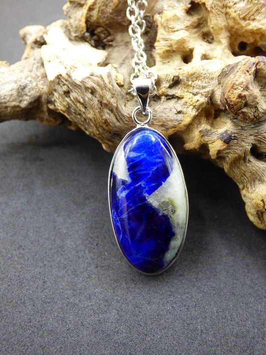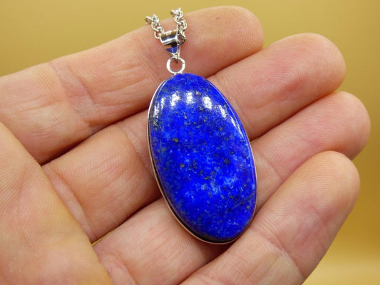 Collier en pierres précieuses Lapis-lazuli avec monture en argent sterling 925 et œillet, ainsi qu'une chaîne en acier inoxydable 304 avec fermoir mousqueton. Origine Lapis Lazuli : -Afghanistan Taille :...