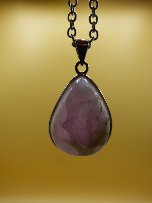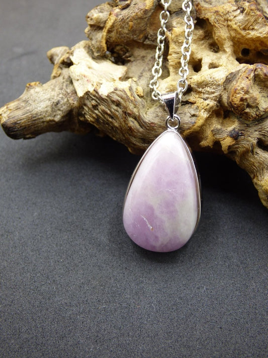 Collier en pierres précieuses Kunzite ~ avec monture en argent sterling 925 + œillet et chaîne en acier inoxydable 304 avec fermoir mousqueton Origine : -Afghanistan Taille : voir comparaison...