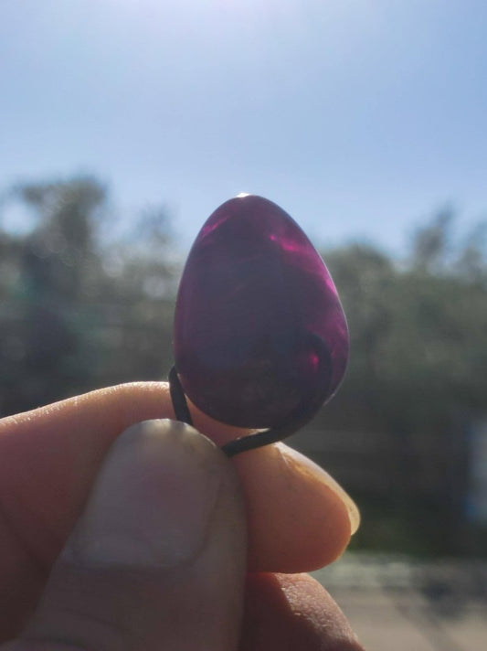 Collier de pierres précieuses avec une fluorite d'un magnifique violet foncé - comprenant un cordon en cuir marron antique de 1,5 mm à nouer. Lorsque l’on commence à s’intéresser au...