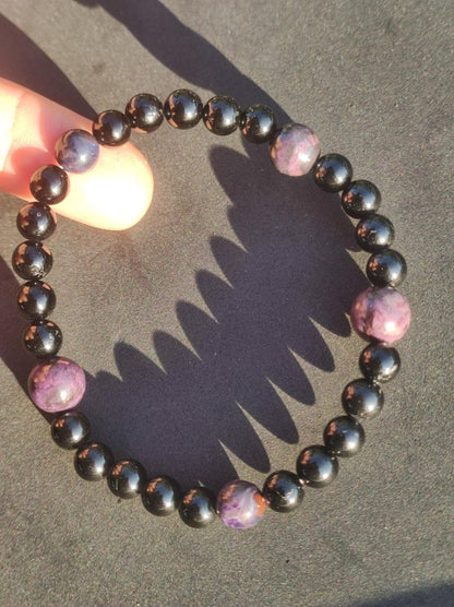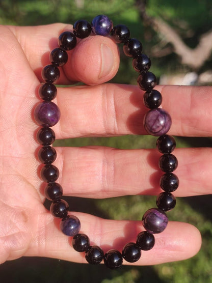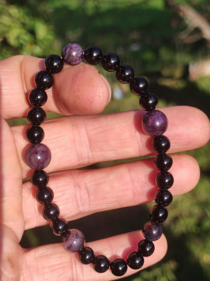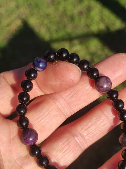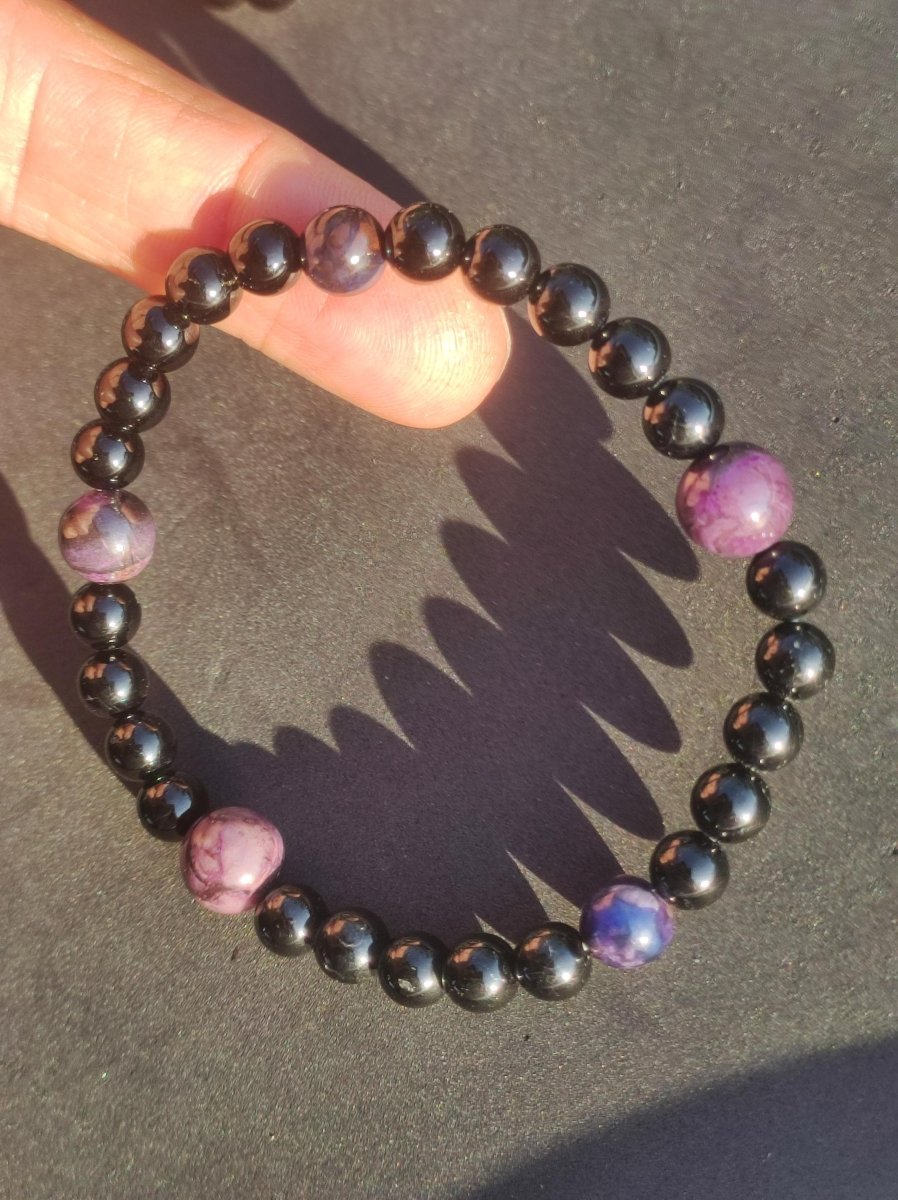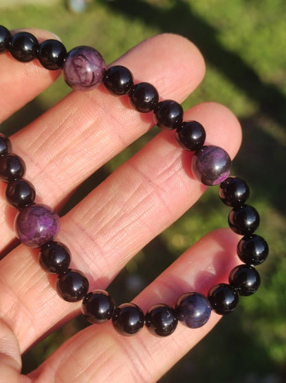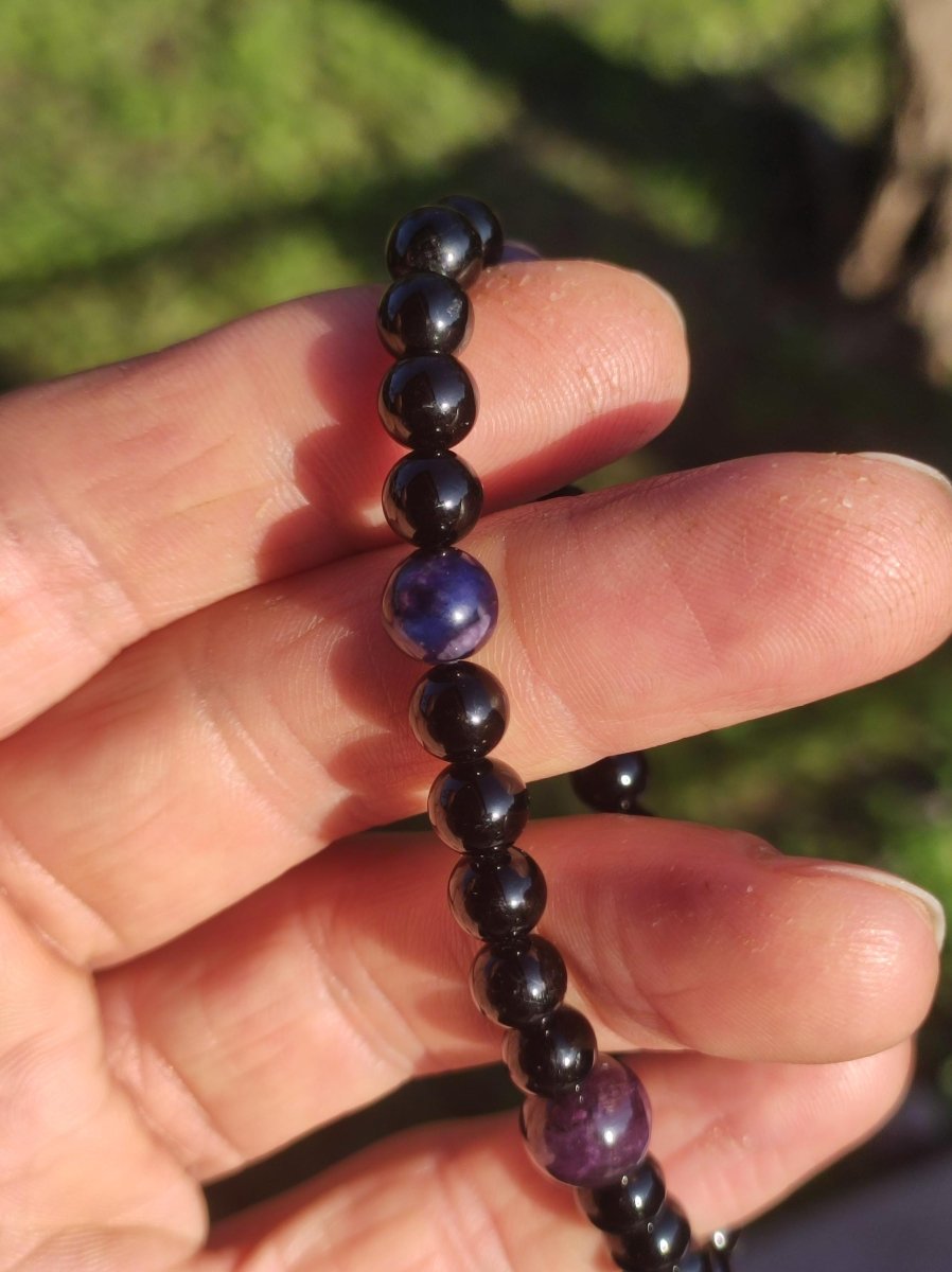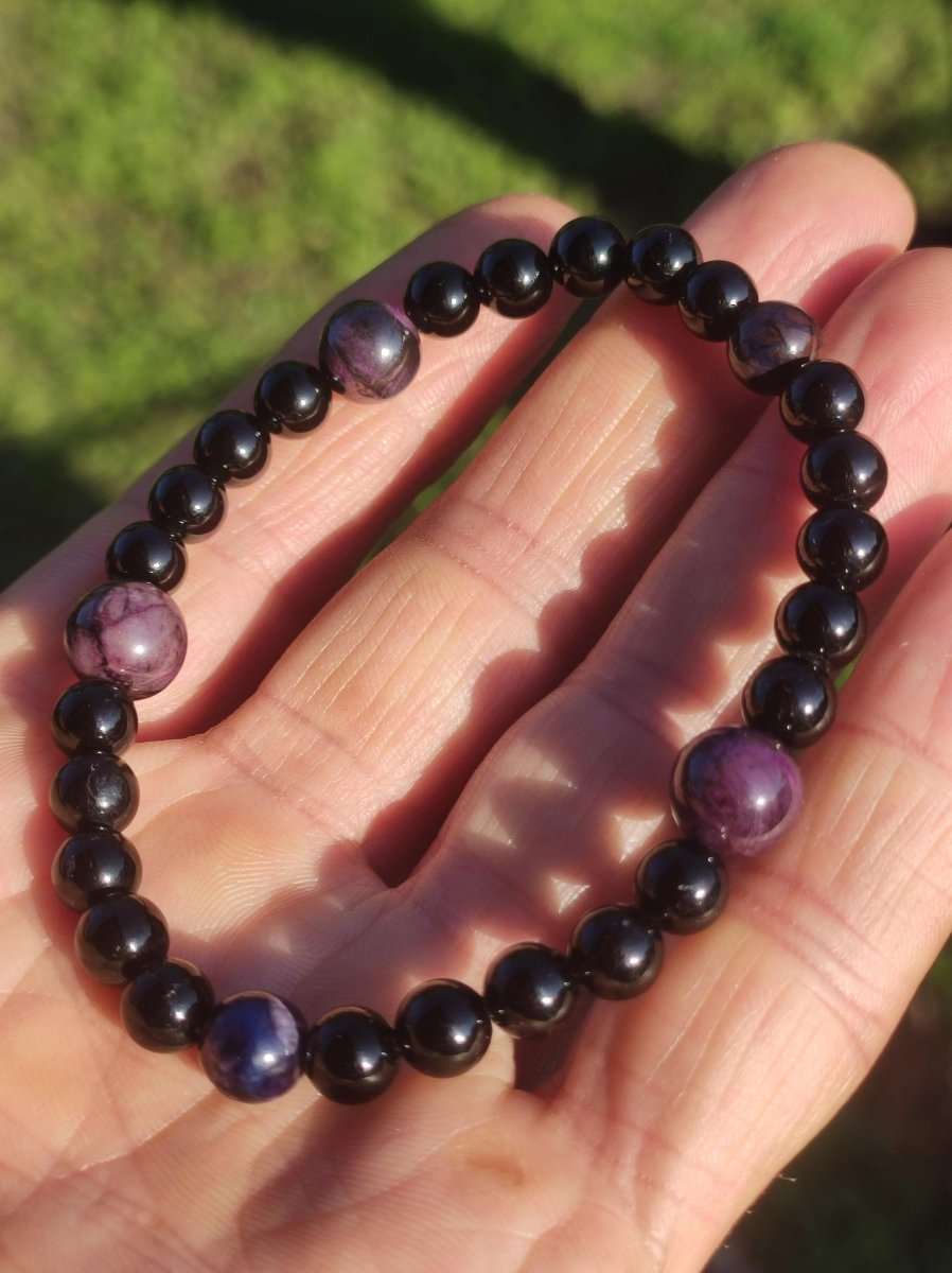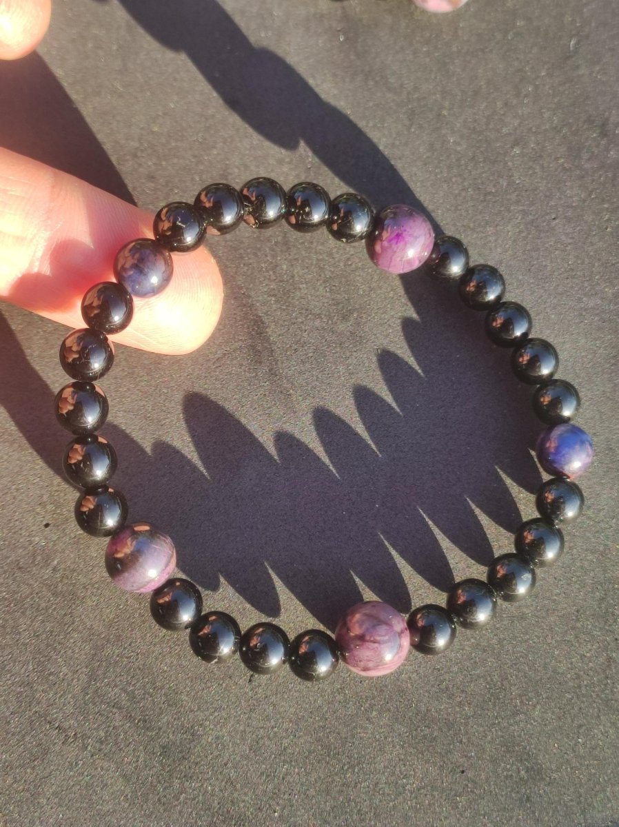 Sugilith 7+9mm + Turmalin 6mm Edelstein Armband Perlen ~ ohne Verschluss ~ auf einem mit Stretch Band *Unikat*