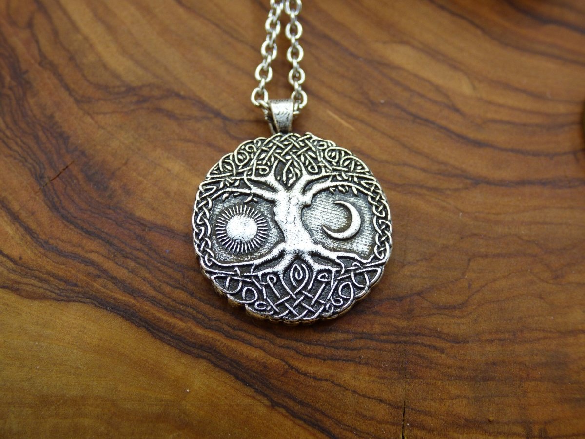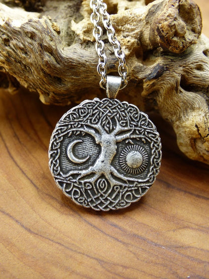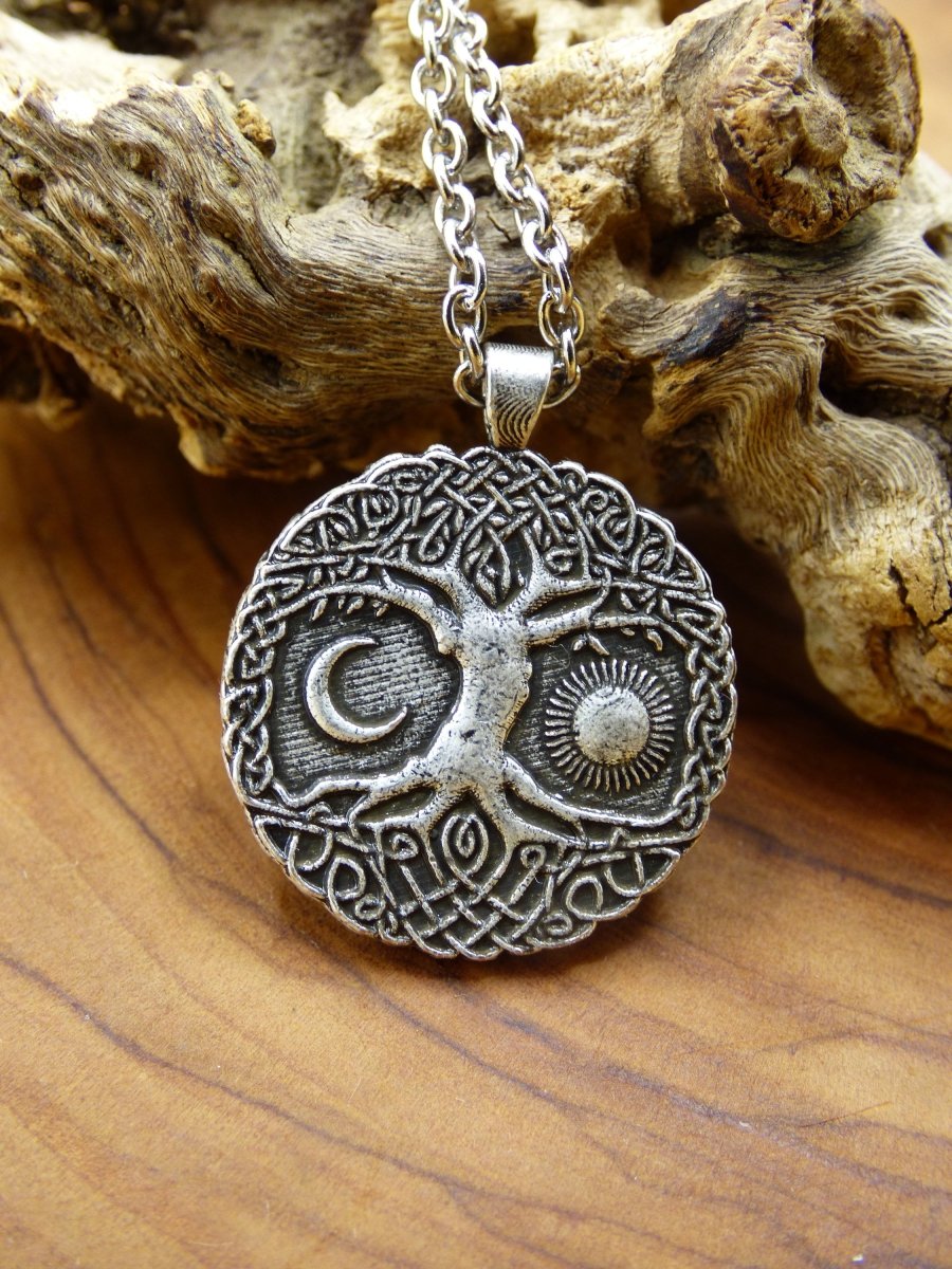 Lebensbaum Anhänger ~ Amulet Kette aus Antik Messing mit einer 304 Edelstahl Ösenkette mit Karabinerverschluss