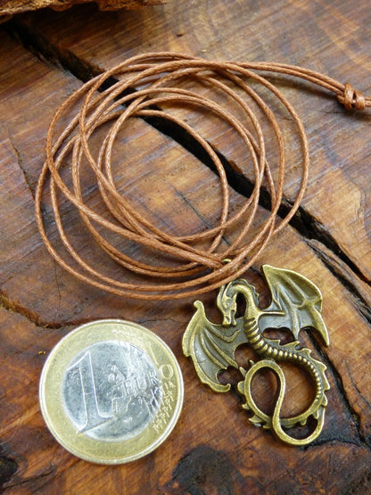 Eine Drachen Kette aus Antik Bronze, für jeden echten Game of Thrones Fan :P Inkl. 1mm stabiler Baumwollwachsschnur zum Knoten für Wunschlänge. Wir wünschen viel Freude beim rumstöbern in unserem...