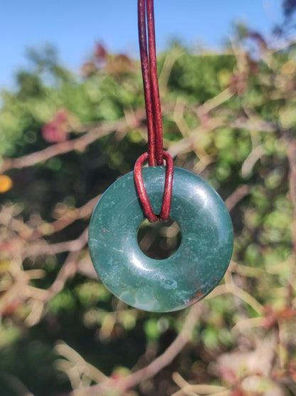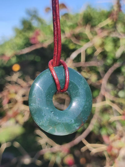 Heliotrop ~ Donut 30mm ~ Edelstein Kette ~ inkl. 2mm Lederband in Antik Braun zum Knoten