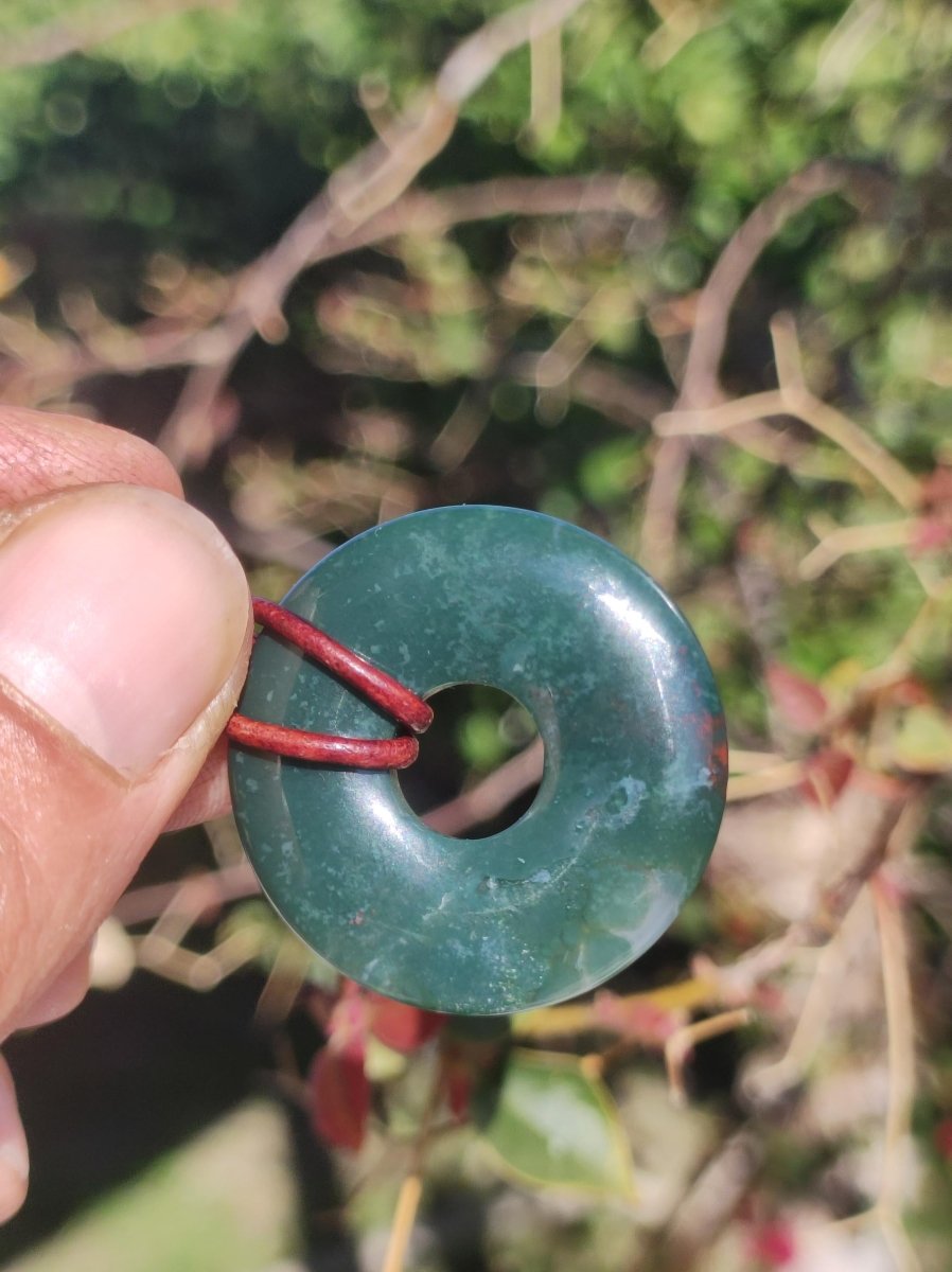 Heliotrop - Donut 30mm Edelstein Kette rund Heilstein Schutzsymbol Mann Frau Kind Glück HIPPIE GOA Boho Tibet Ethno Natur Rarität Geschenk