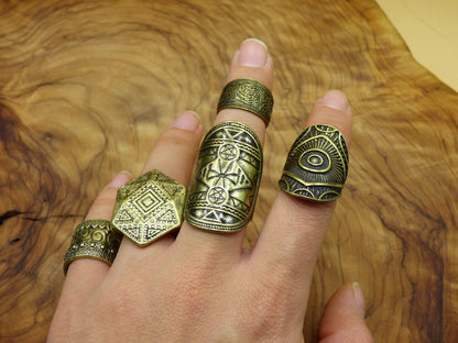 1x Tibetischer Messing Ring oder riesen Dreadperle mit einer goldenen antiken Zink Legierung. Sehr massiv & hochwertig Muste 1-5 zur Wahl - Fotos verlinkt Innendurchmesser (Lochgröße): größere Ringe: 18mm (Muster...