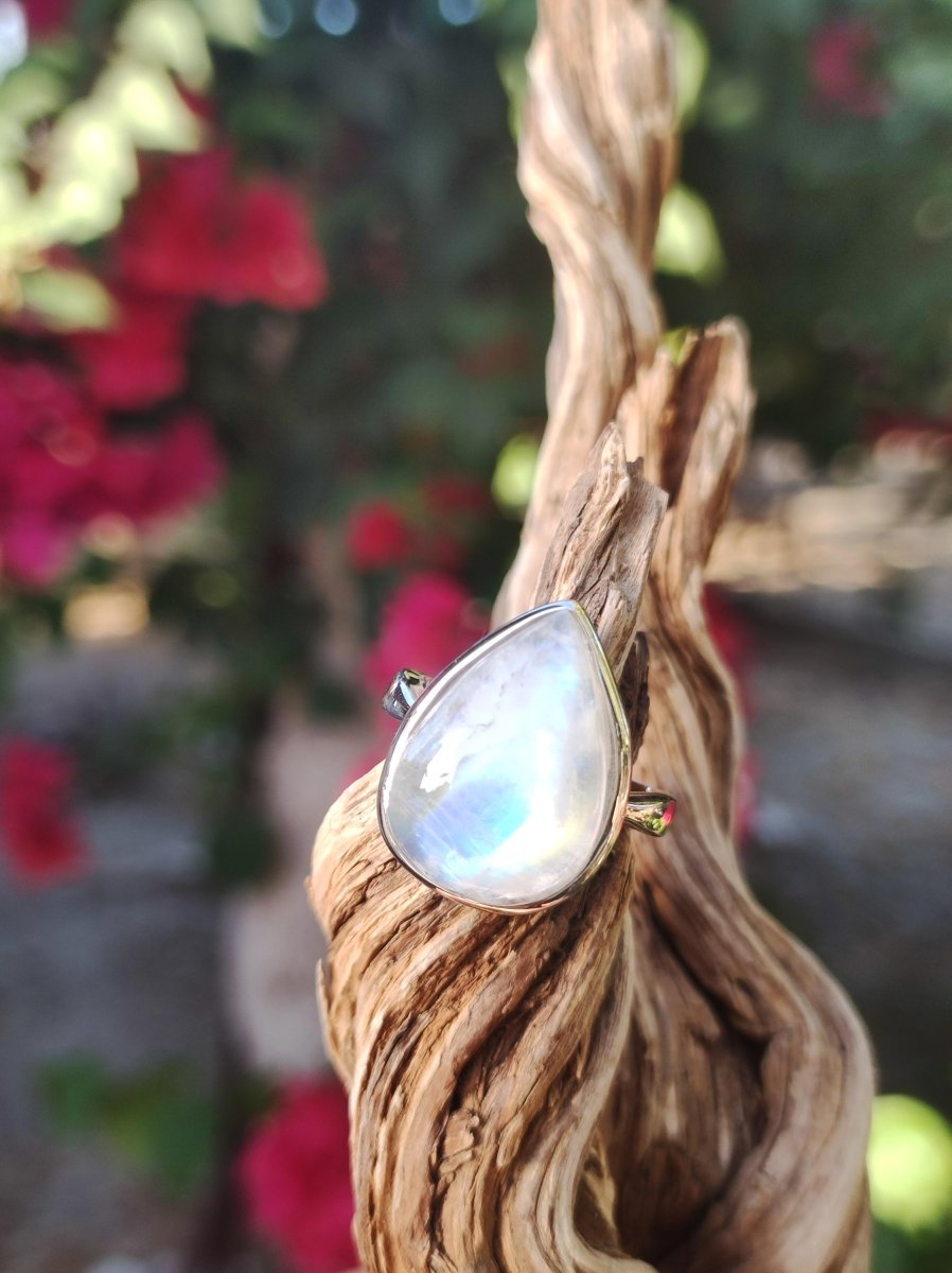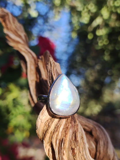 Mondstein Edelstein Ring ~schimmernde A Qualität -925 Sterling Silber -Größenverstellbar -Stein Größe: 20 x 15mm Wir wünschen viel Freude beim rumstöbern in unserem Shop, wenn dir gefällt was du siehst,...