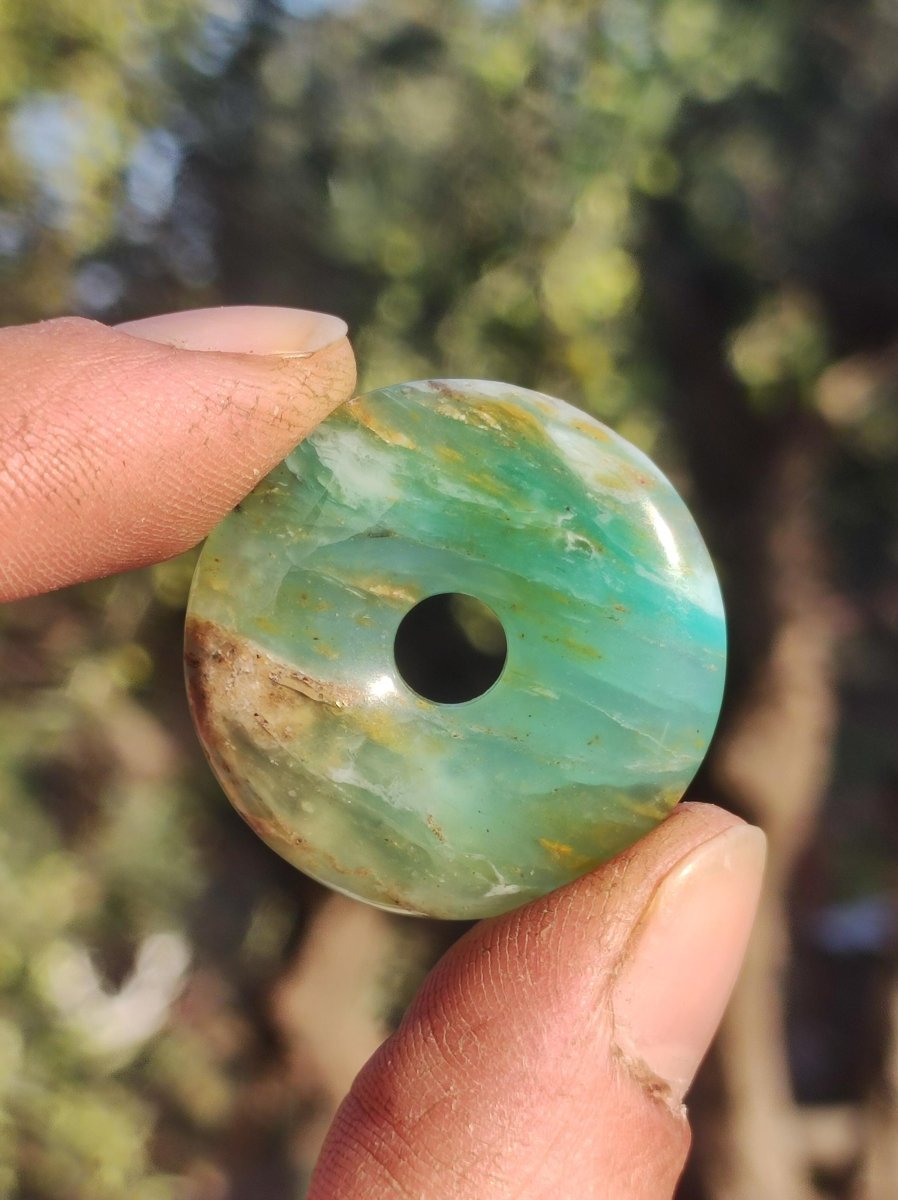 Opal Andenopal blau ~ Edelstein Kette HIPPIE GOA Boho Ethno Nature Donut Schutzsymbol Heilstein Chakra Sammler Mineral Rarität Mann Frau