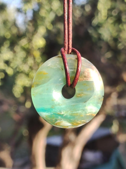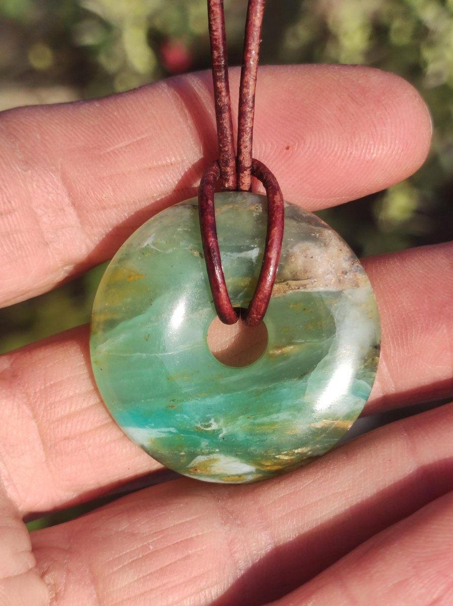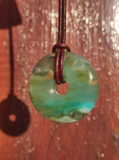 Andenopal ~ Donut 30mm Edelstein Kette ~ inkl. Lederband 1,5mm in Antik Braun zum Knoten für Wunschlänge.