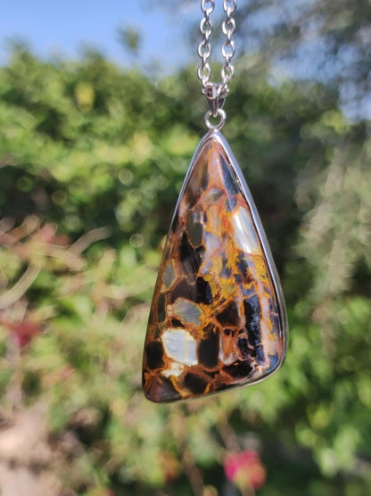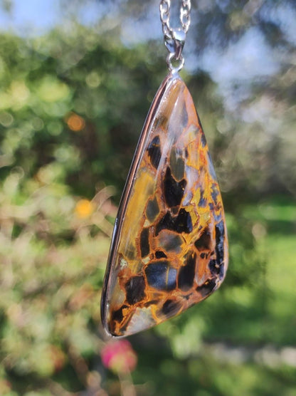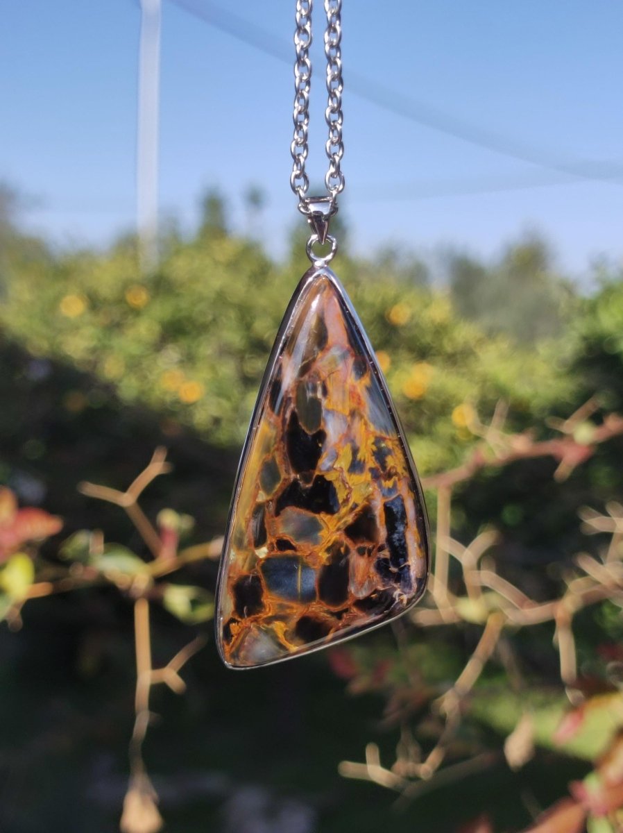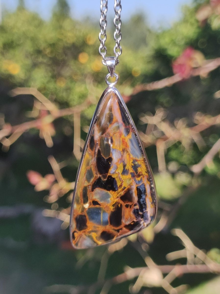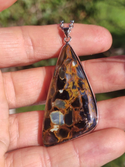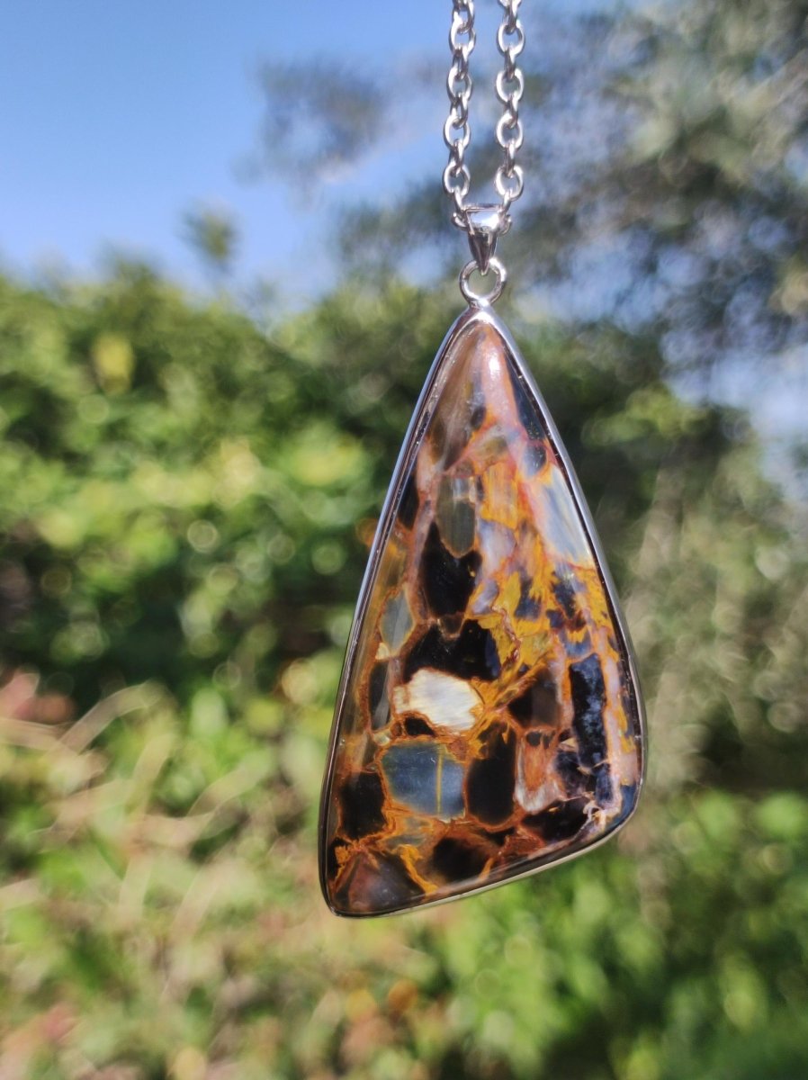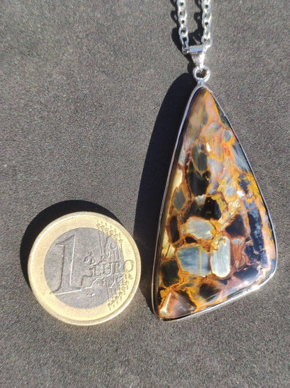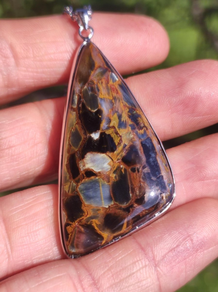 Pietersite AAA Edelstein Kette mit einer 925 Sterling Silber Fassung + Öse und einer 304 Edelstahl Kette mit Karabinerverschluss Eine traumhafte Qualität und neuste Spezialanfertigung von uns :) Der Cabochon...