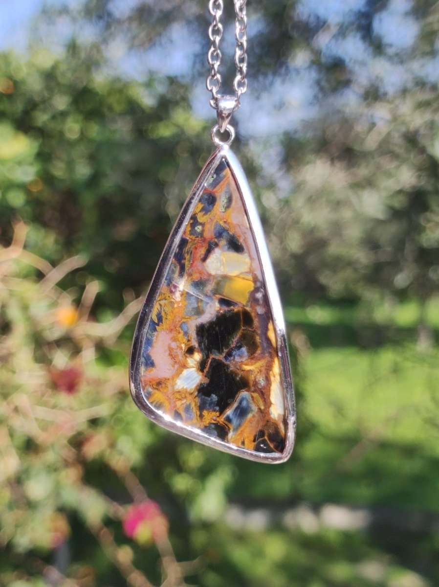 Der Pietersit ist ein ganz außergewöhnlicher Stein. Er entsteht aus kleinen Stücken von Falken- und Tigeraugen. Diese werden von der Natur unter sehr starken Druck zusammengepresst.