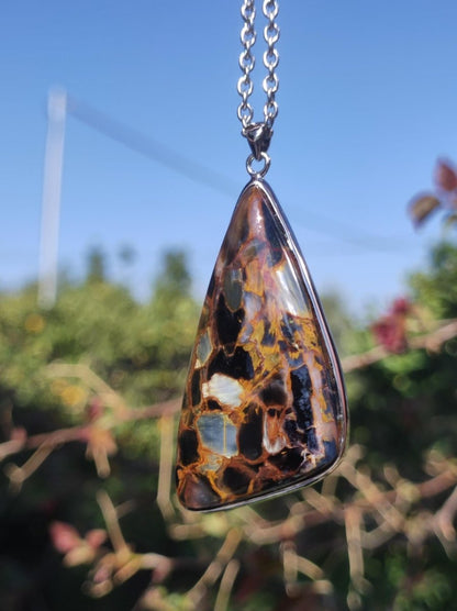 Pietersite AAA Edelstein Kette mit einer 925 Sterling Silber Fassung + Öse und einer 304 Edelstahl Kette mit Karabinerverschluss