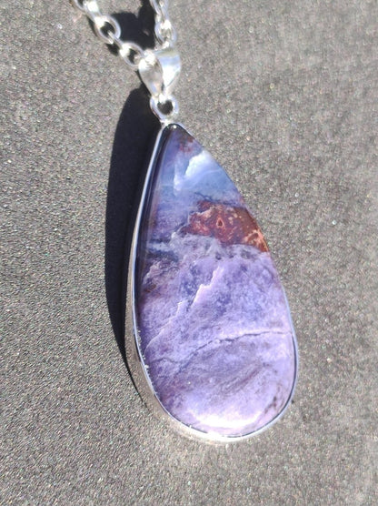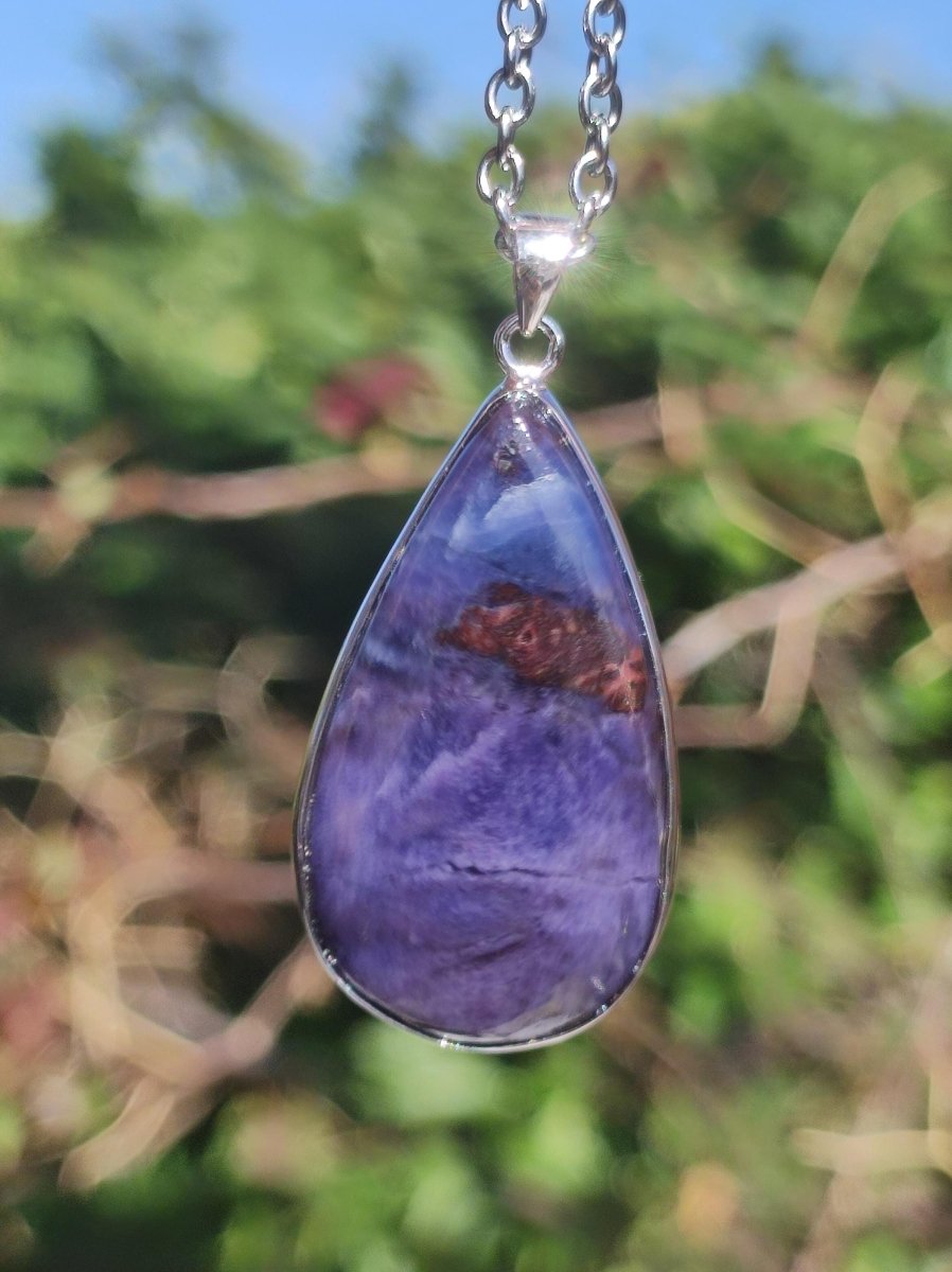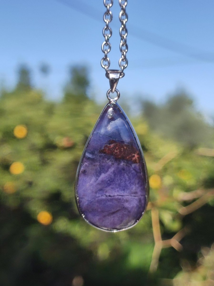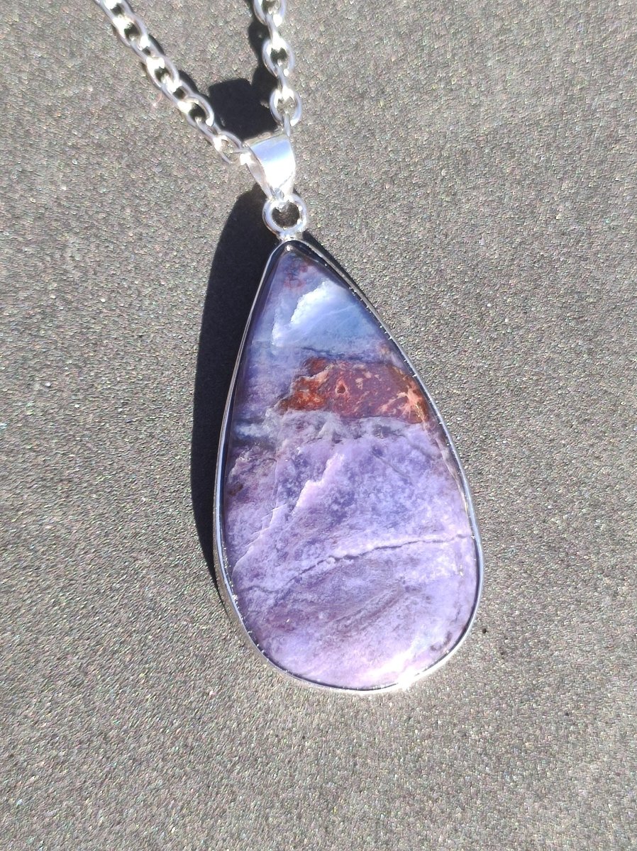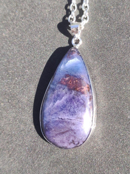 Edelstein Kette mit einem echtem ~Sugilith mit Richterit & Bustamit~ in einer 925 Silberfassung + Öse & einer 304 Edelstahl Kette mit Karabinerverschluss