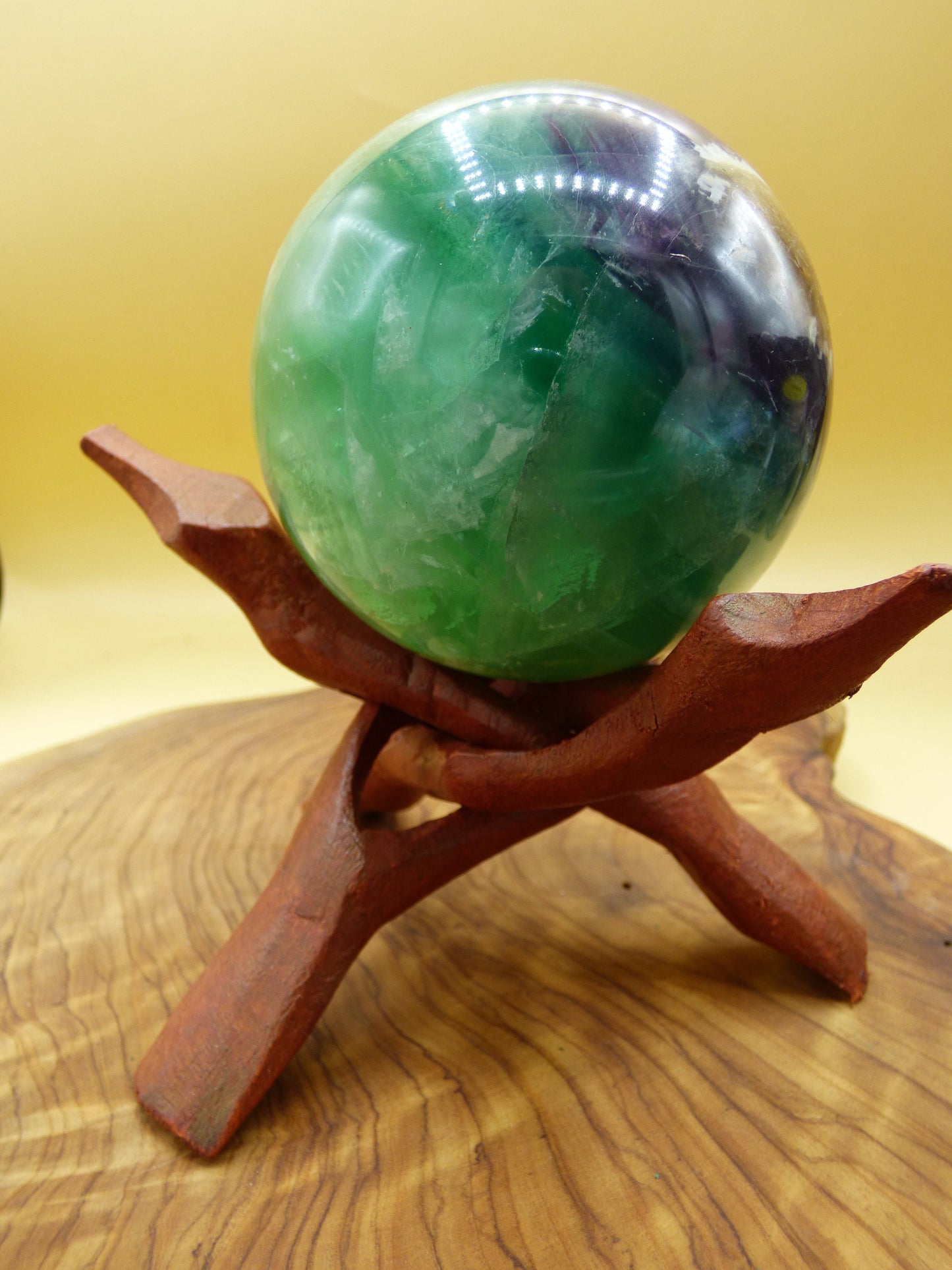 Holz dreibein groß (gig): - 12 cm (Opal Grün Sphere 90mm)