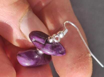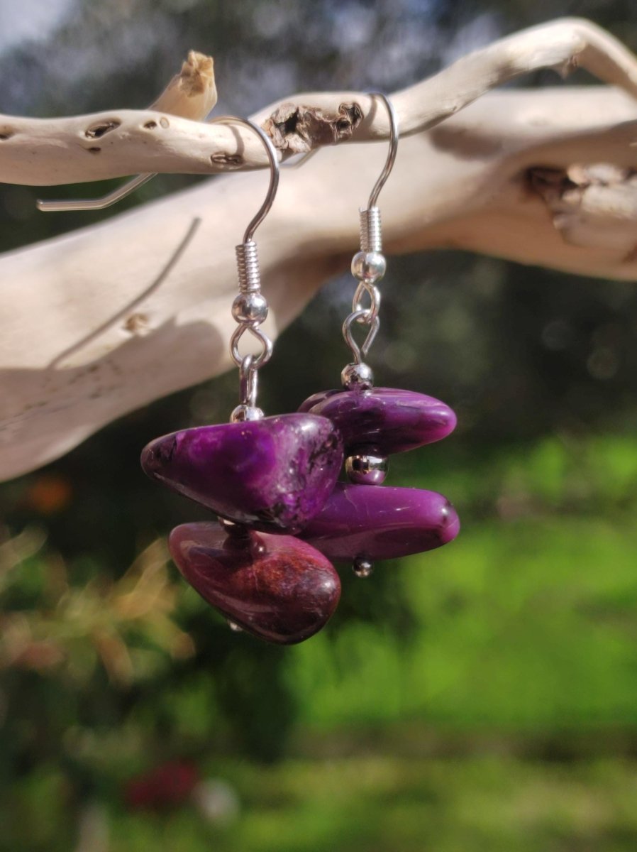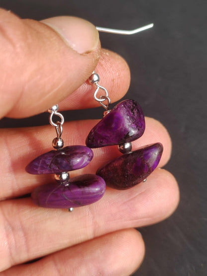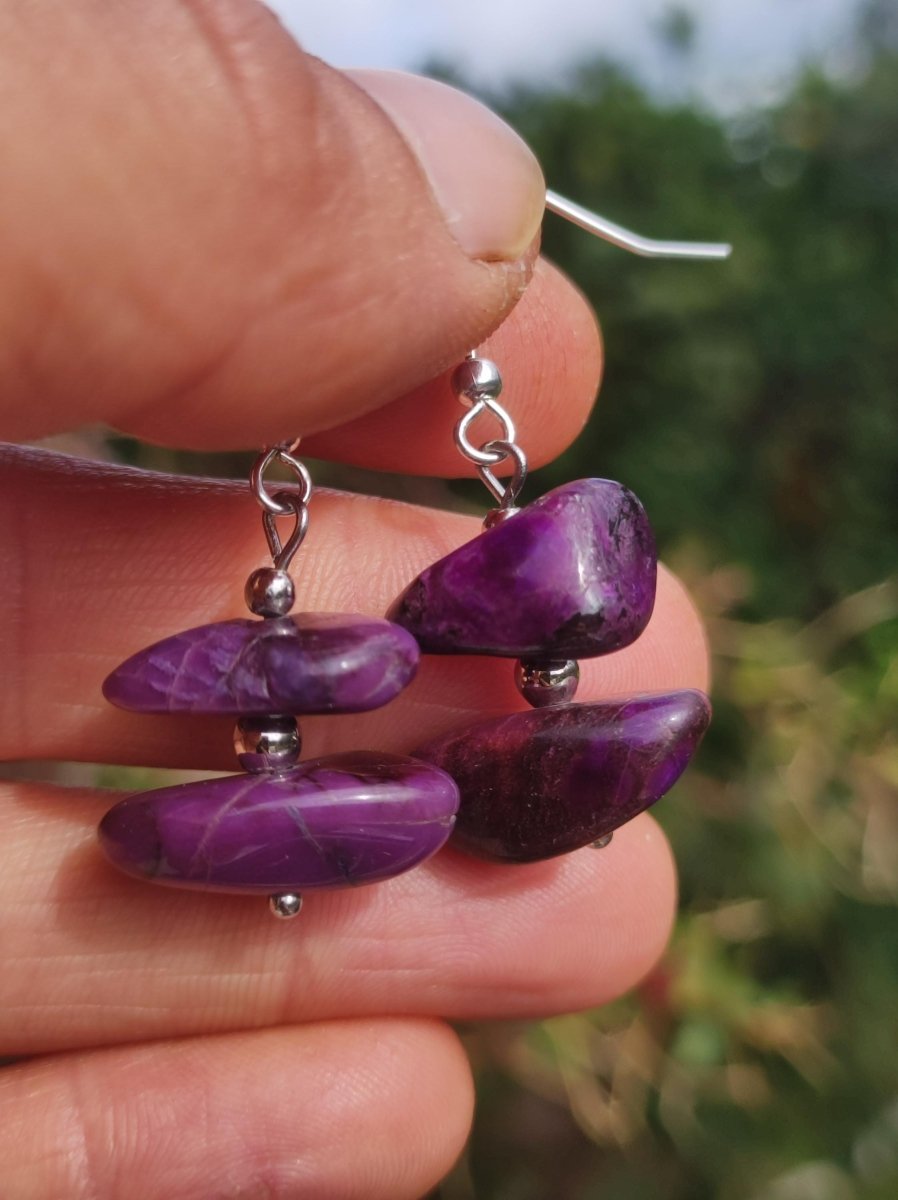 ~Sugilith~ Edelstein Perlen Ohrringe aus 304 Edelstahl + versilberten Ohrhaken