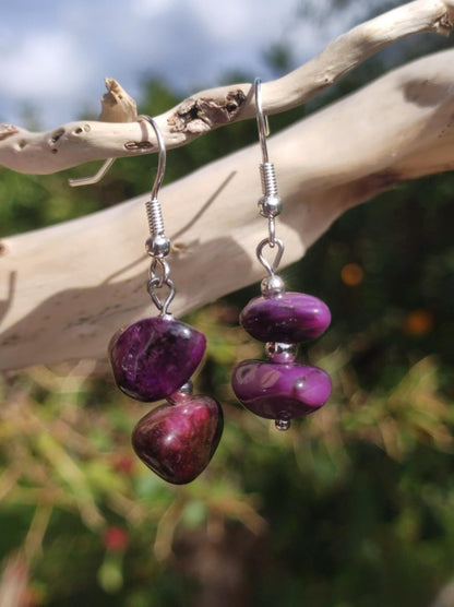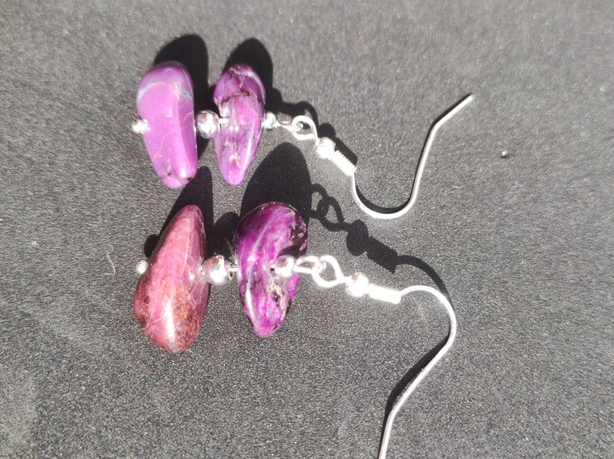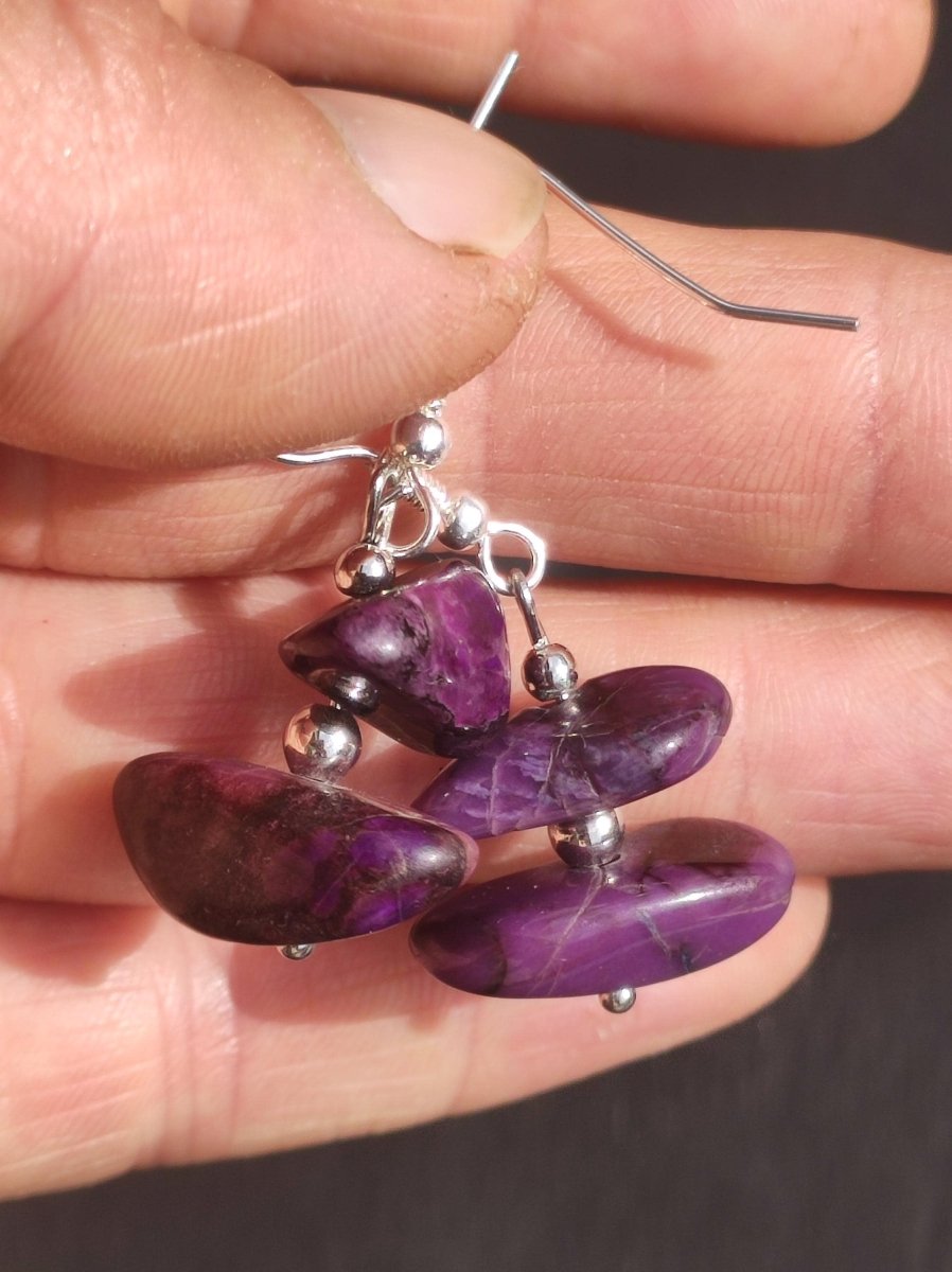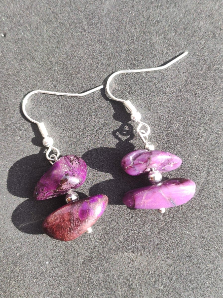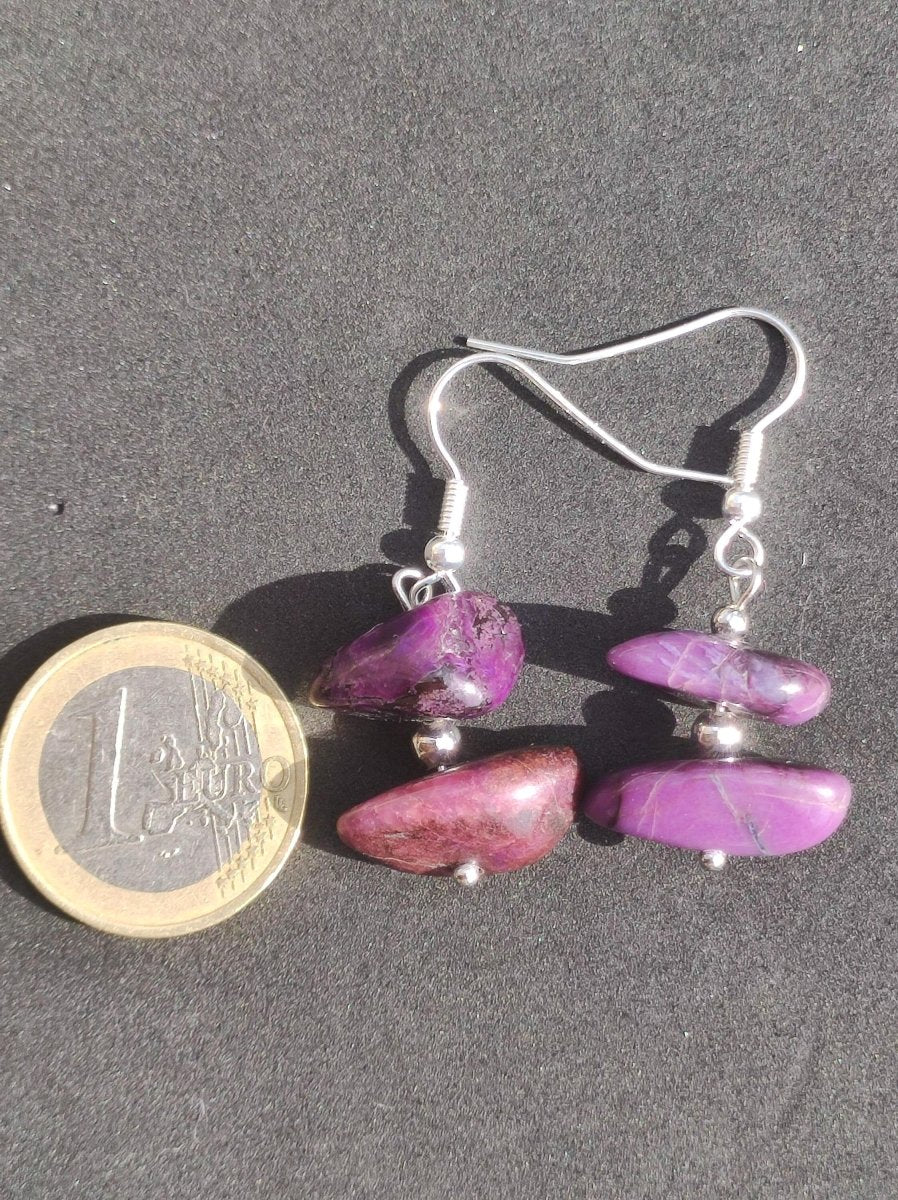 ~Sugilith~ Edelstein Perlen Ohrringe aus 304 Edelstahl + versilberten Ohrhaken Diese Sugilith Nuggets haben eine extravagante Qualität Sugilith Dieses Paar ist ein Unikat, du erhältst also das abgebildete Produkt. Ein...
