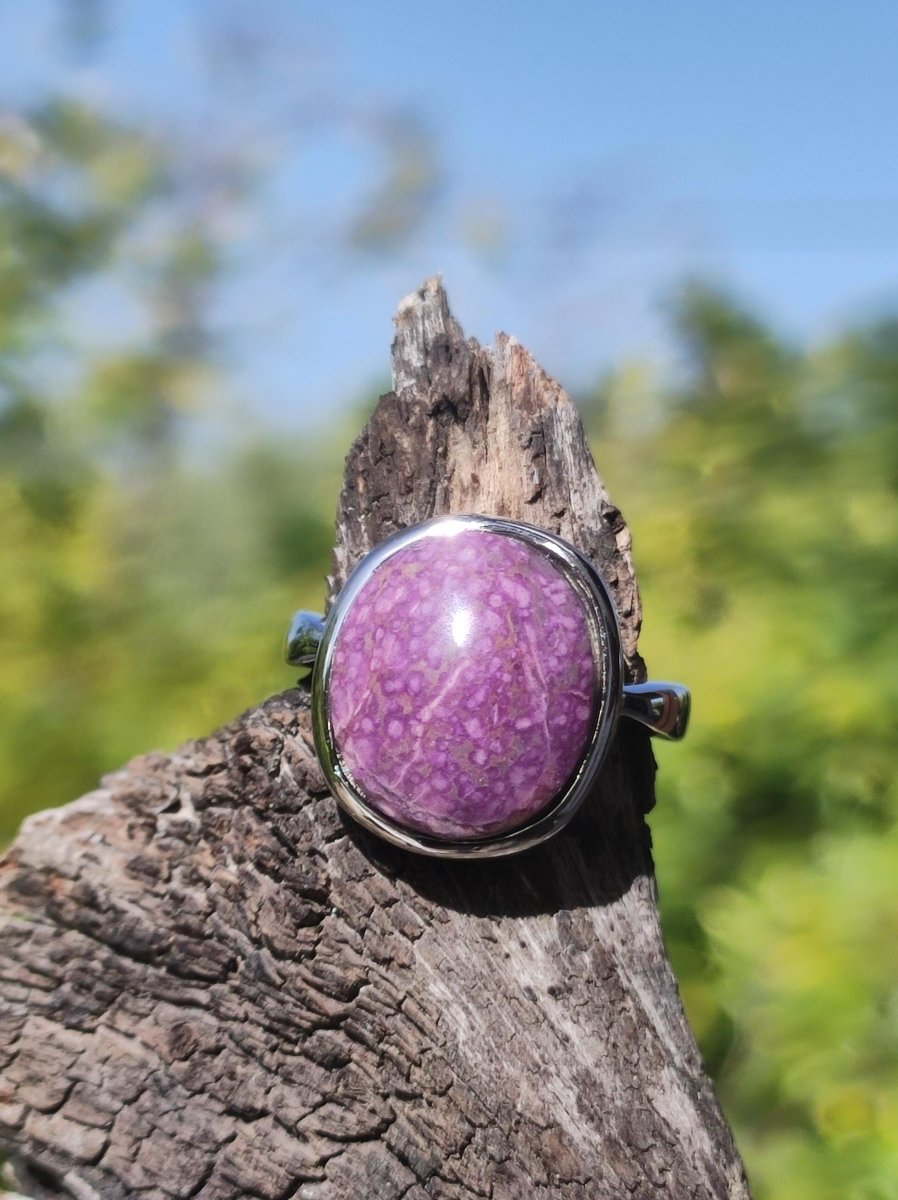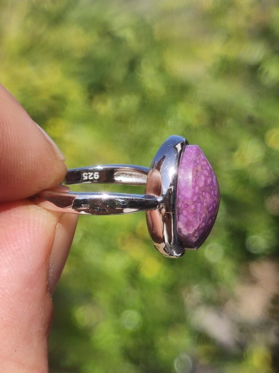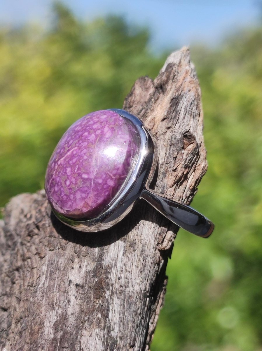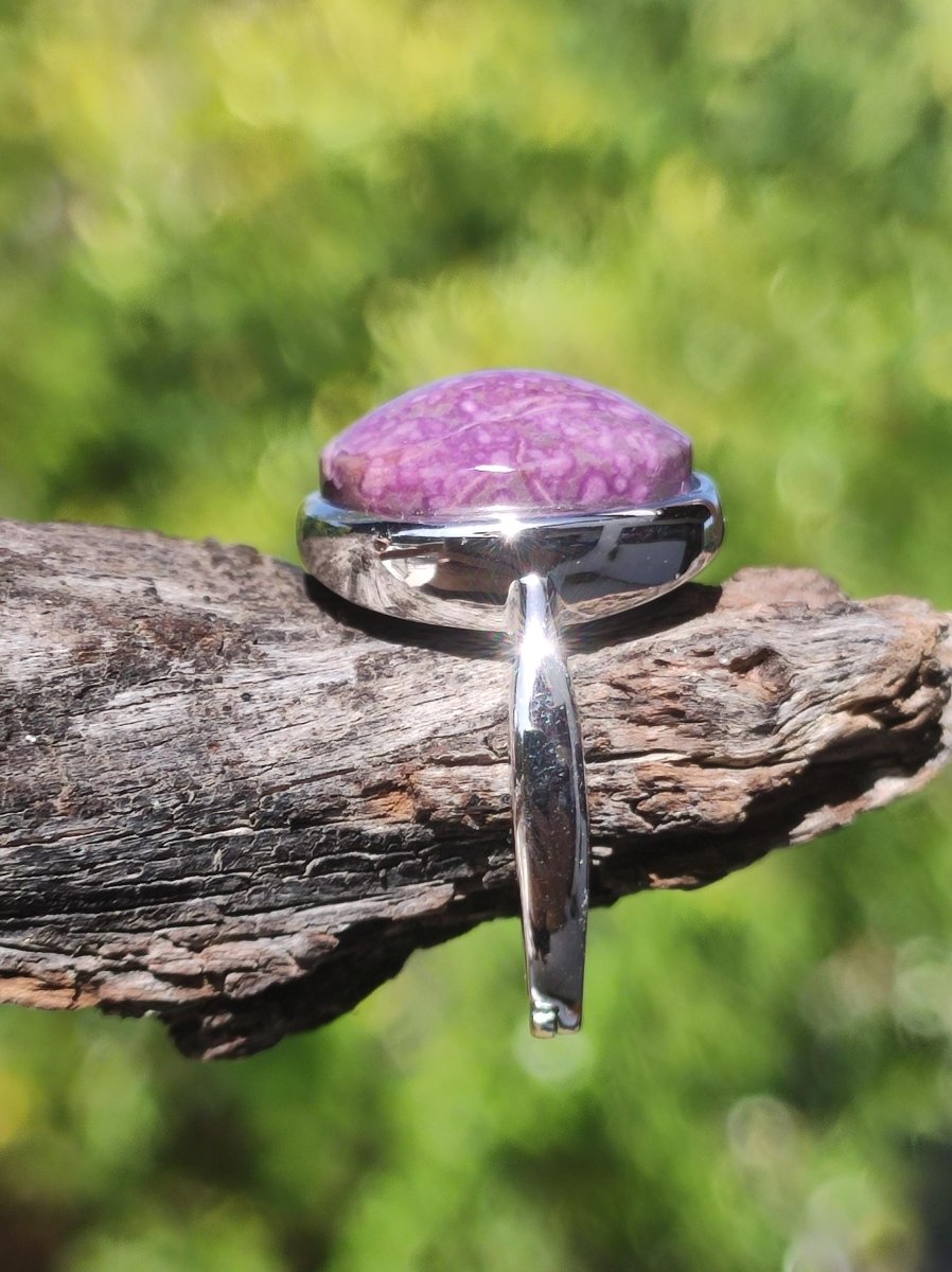 925 Silber Ring (Größenverstellbar) mit einem wunderschönem natürlichen Sugilith Cabochon in einem extrem intensivem lila - 100% natürlich