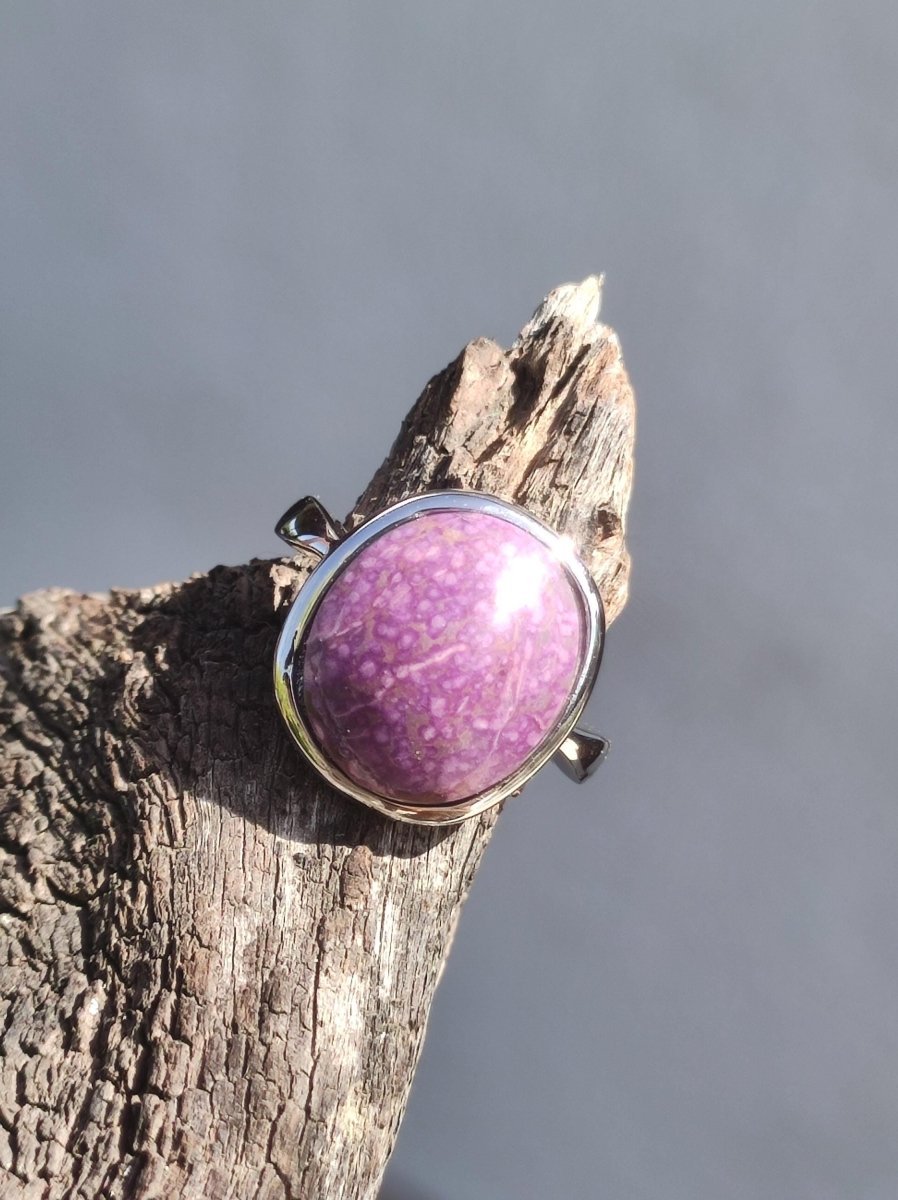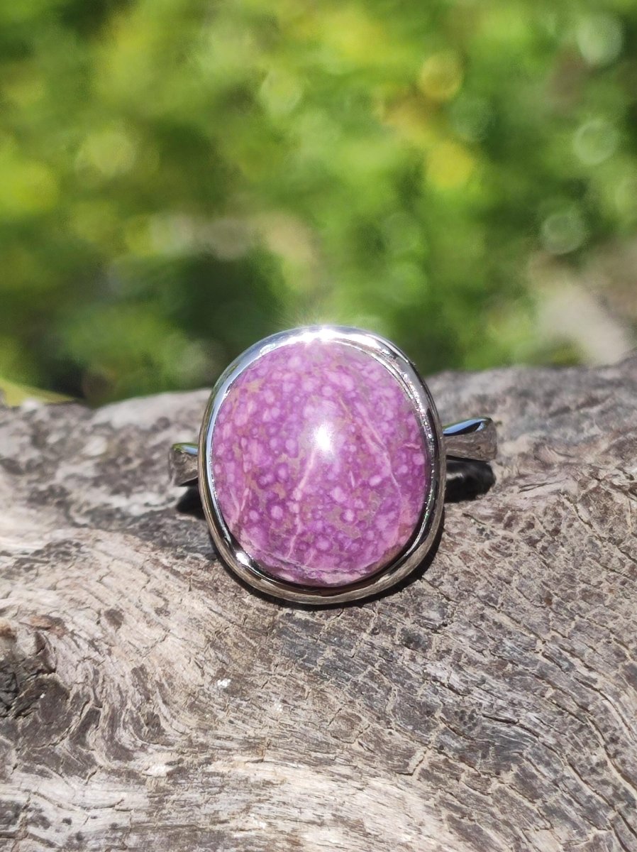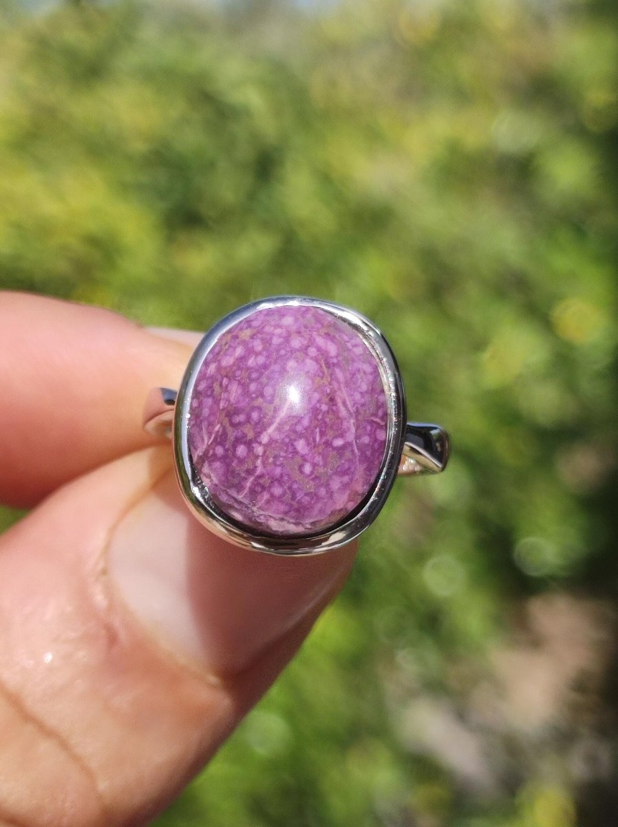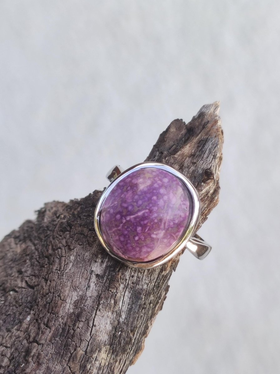 925 Silber Ring (Größenverstellbar) mit einem wunderschönem natürlichen Sugilith Cabochon in einem extrem intensivem lila - 100% natürlich