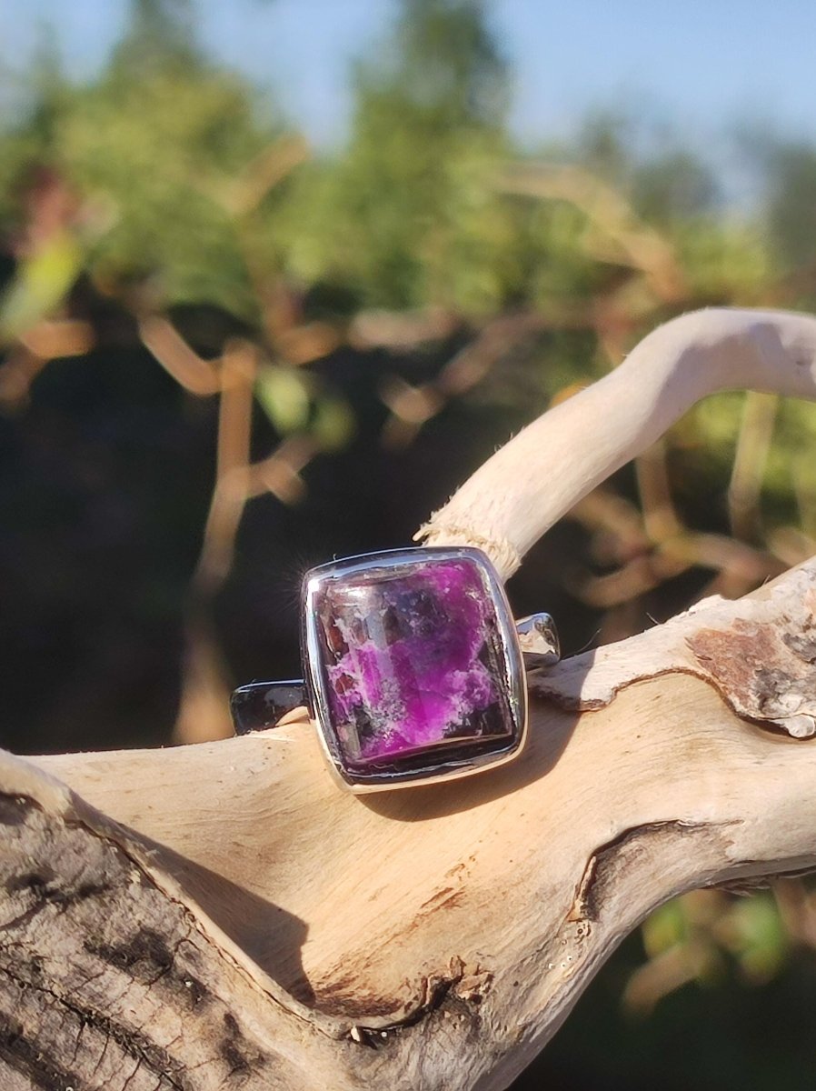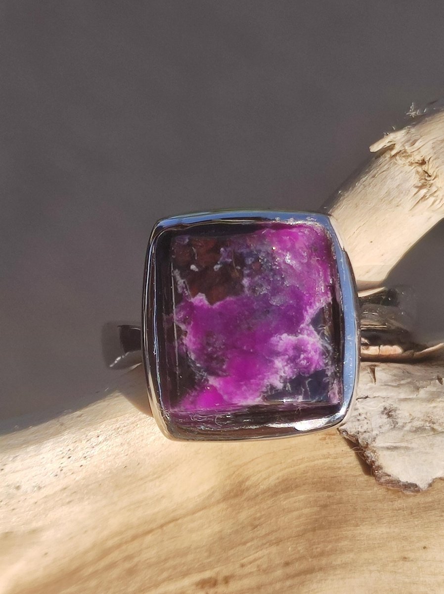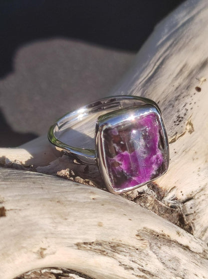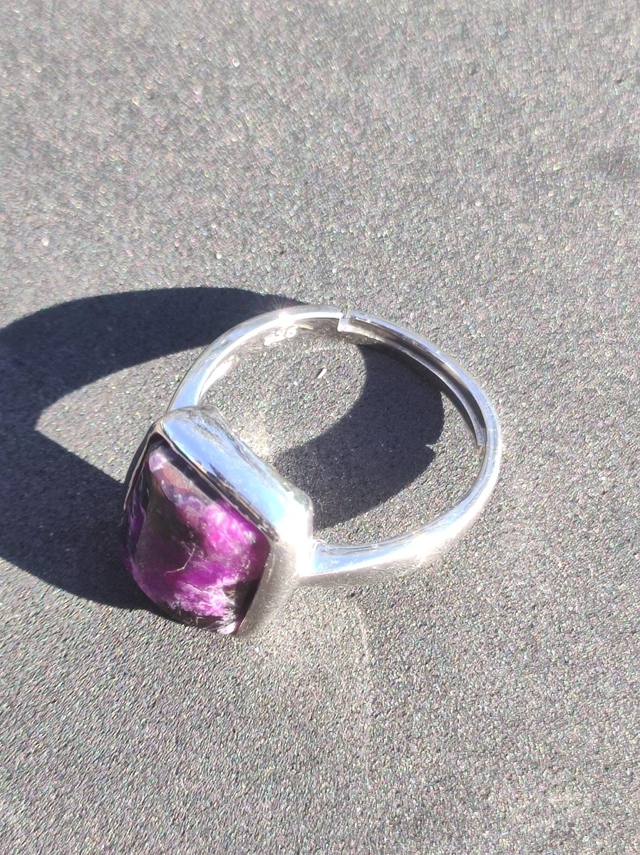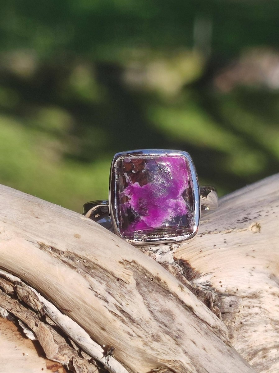 925 Silber Ring (Größenverstellbar) mit einem wunderschönem natürlichen Sugilith Cabochon in einem extrem intensivem lila - 100% natürlich