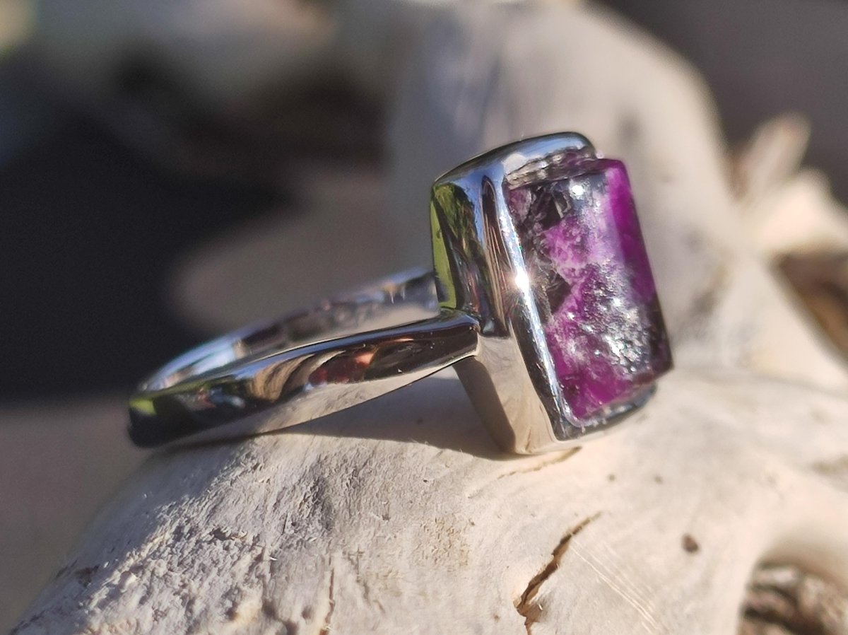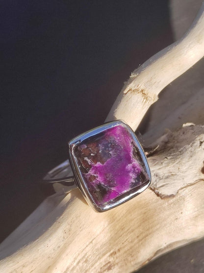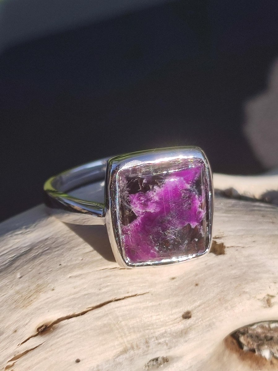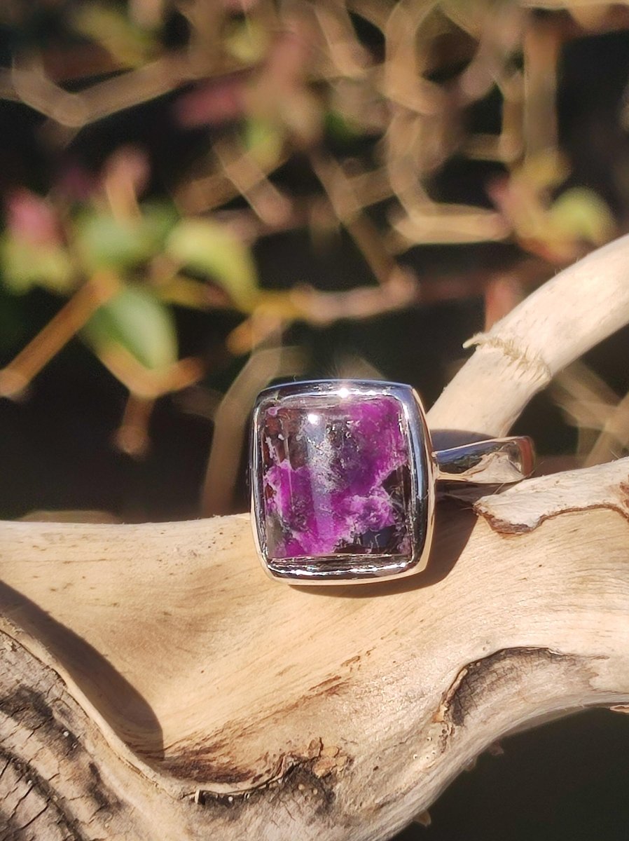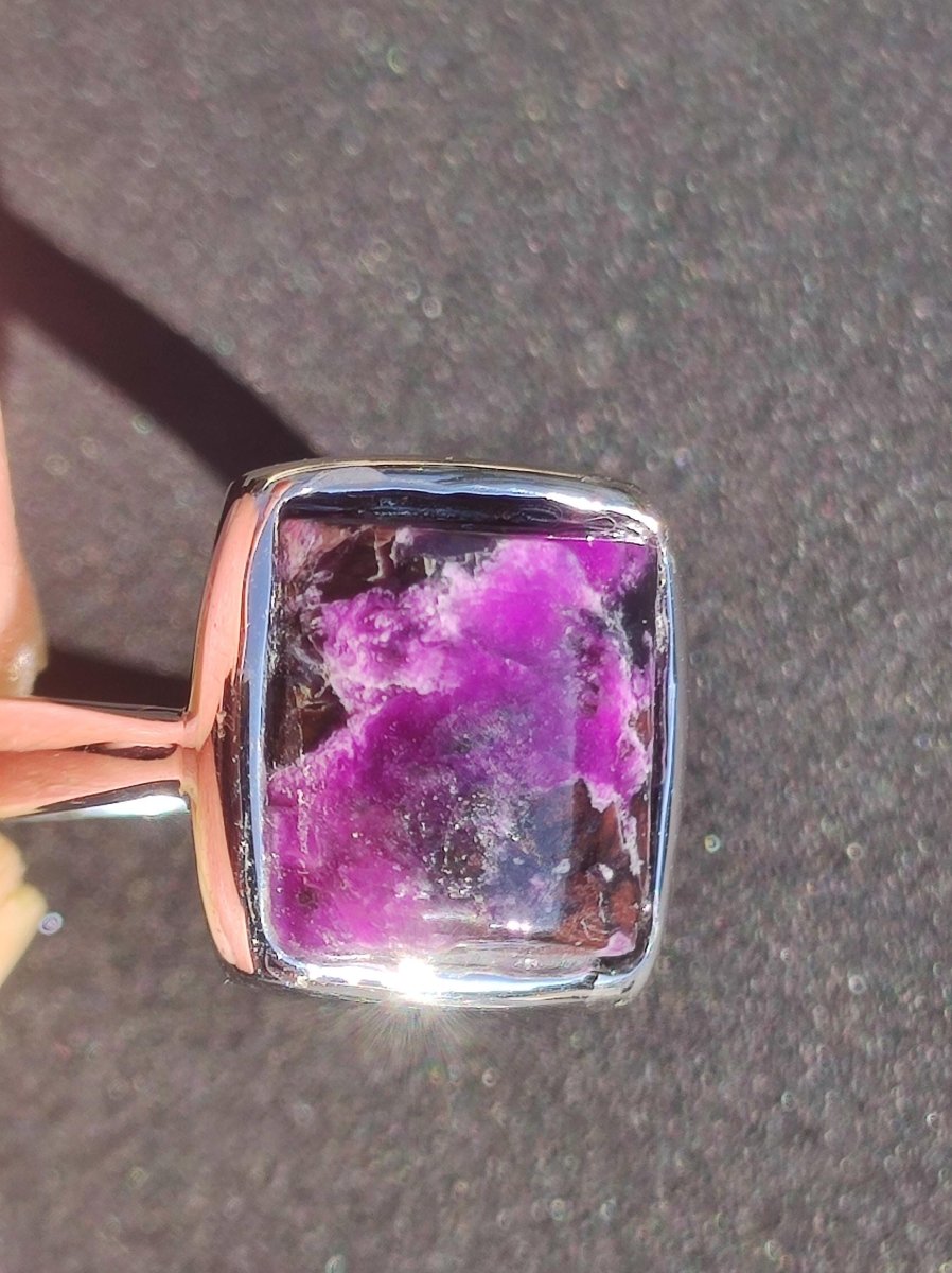 925 Silber Ring (Größenverstellbar) mit einem wunderschönem natürlichen Sugilith Cabochon in einem extrem intensivem lila - 100% natürlich