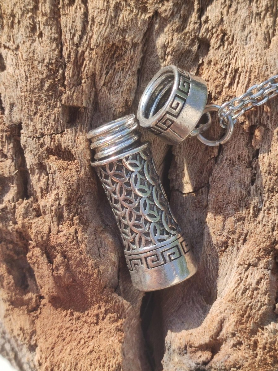Wunderschöne tibetische Anhängerkette ~ Gebetskette ~ Urne ~ Box für sonstiges... Hochwertiger 990 Silber Diese Kette ist sehr gut produziert und robust. ~Maße: 33 x 13 mm (nur Box, ohne...