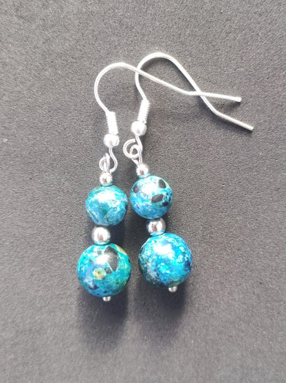 Hier eine ganz neue Kreation von uns ~Variscite 10&8mm~ Edelstein Ohrringe Der blaue Variscite ist noch seltener grüner Wundervolle Perlen, passend ausgewählt Es wurde hochwertiger 304 Edelstahl verwendet & 925...